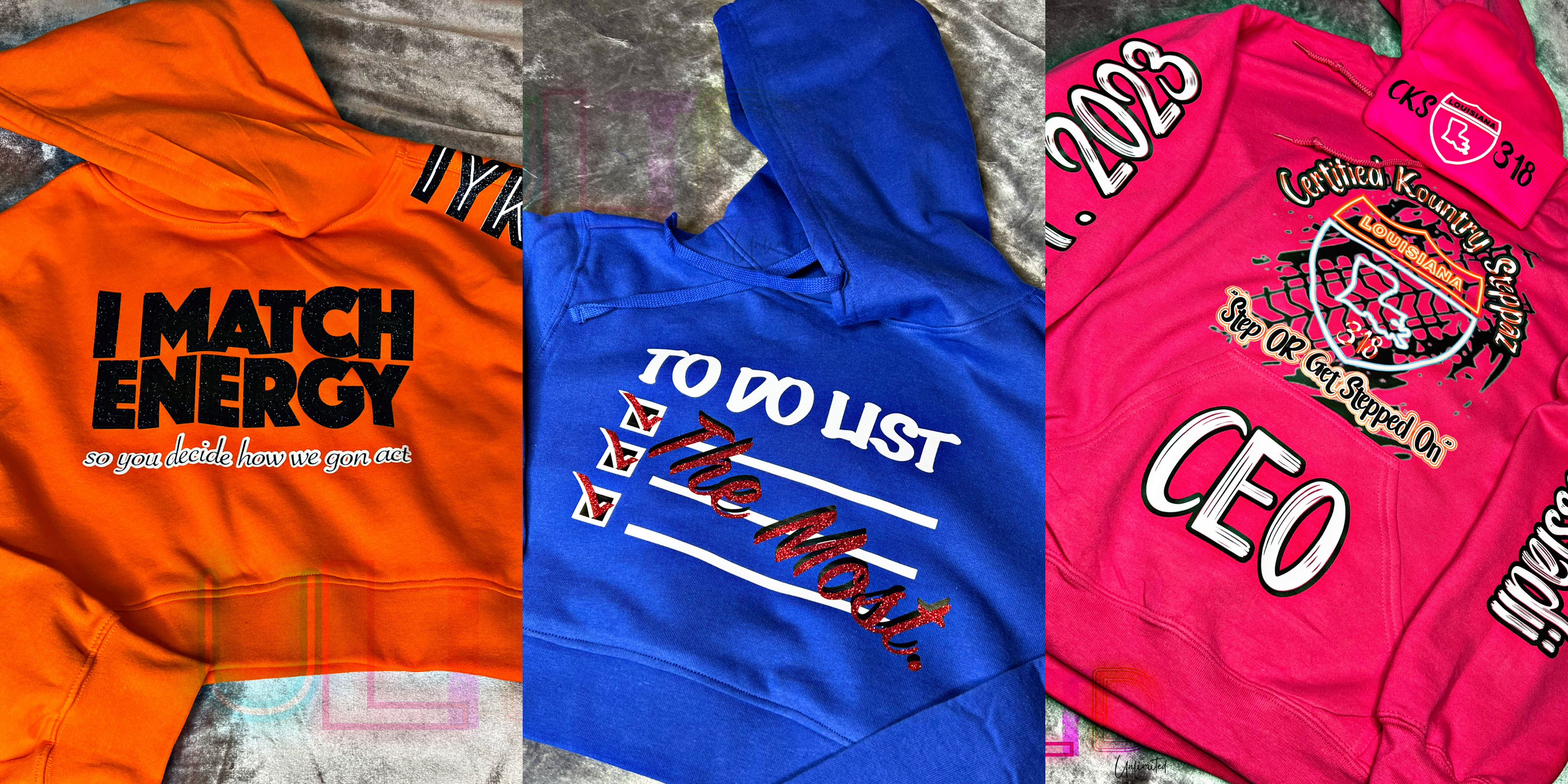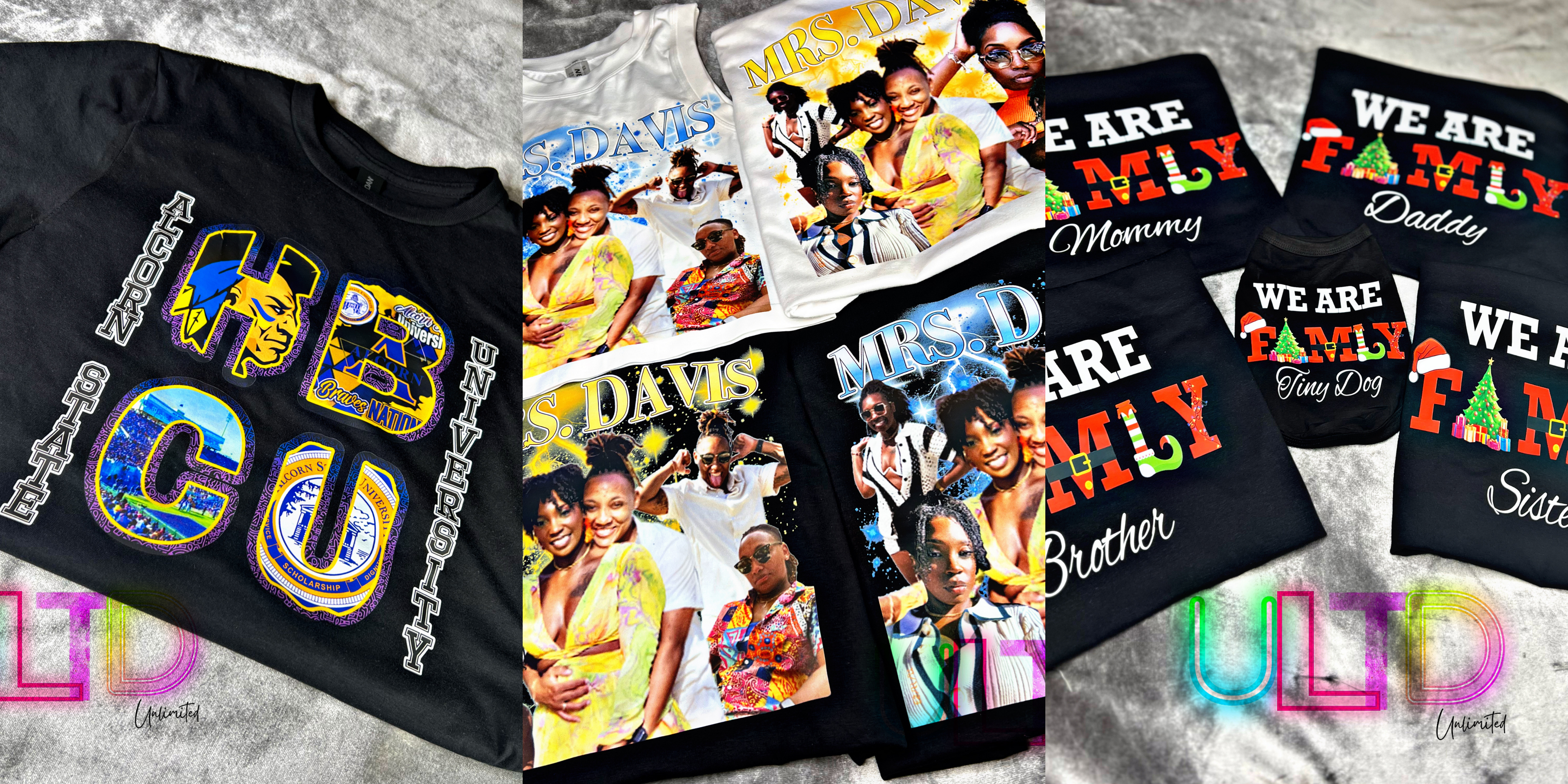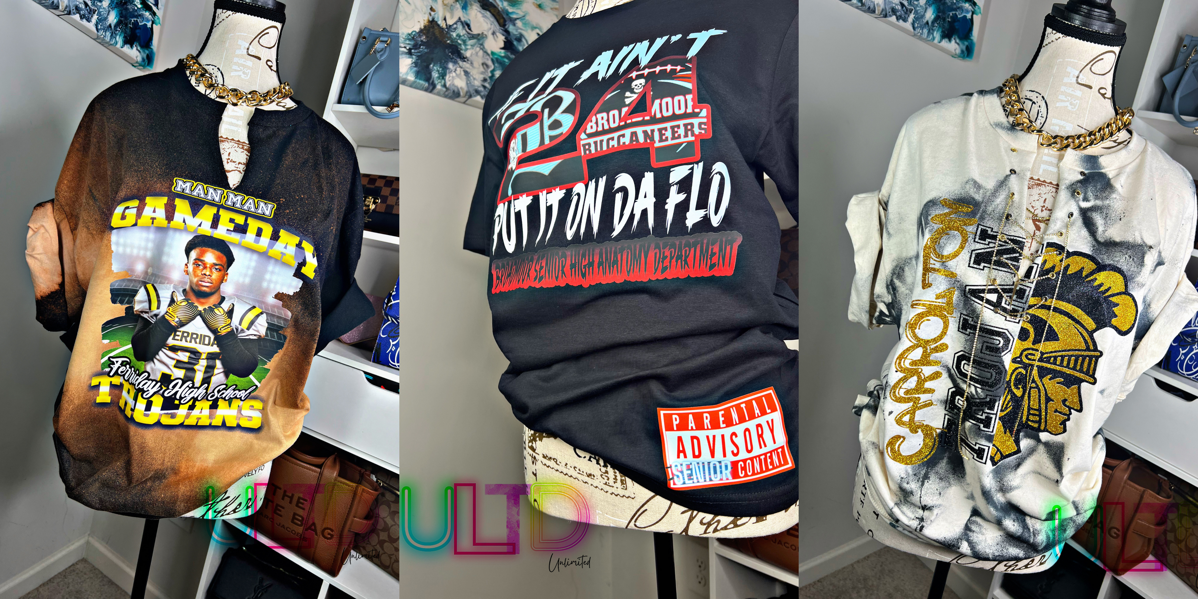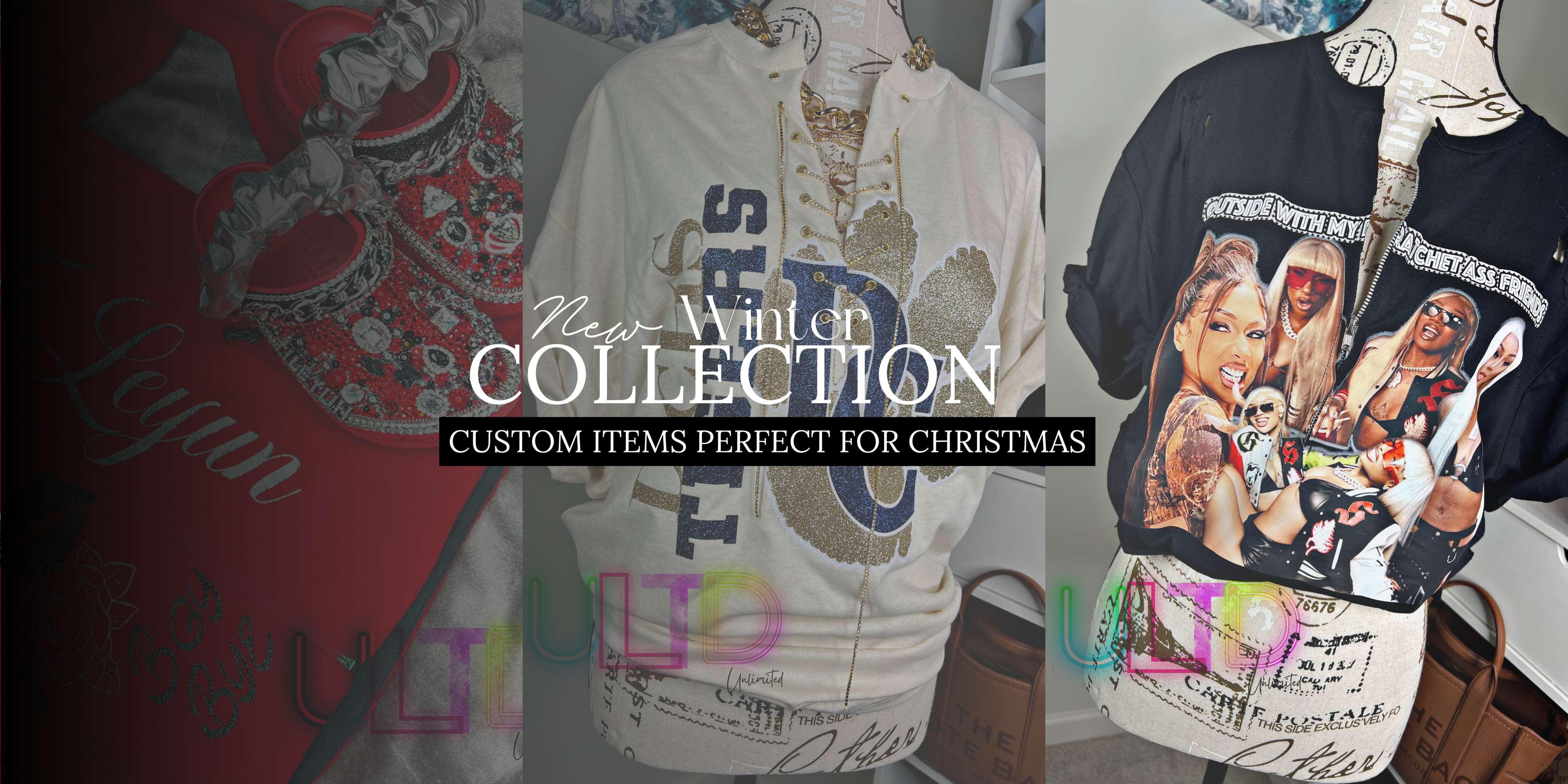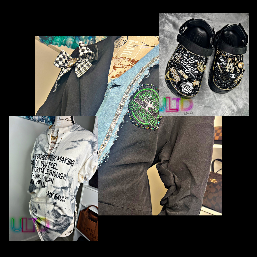 At ULTD Creatives, we specialize in creating custom, one-of-a-kind clothing that reflects your unique style and personality. Whether you’re looking for personalized designs, custom shoes, or standout pieces for special occasions, we’re here to bring your vision to life. Every item is handcrafted with care, ensuring exceptional quality and attention to detail. As a small business, we take pride in building meaningful connections with our customers and making each experience truly personal. At the heart of what we do is a passion for creativity, individuality, and the joy of self-expression through fashion.